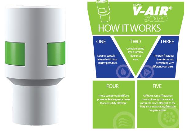 Η τεχνολογία αυτή διατίθεται με τα προϊόντα Ecoshell® και Airloop®. Αυτή η πρακτική και οικολογική τεχνολογία επιτρέπει για πρώτη φορά σε αποσμητικά χώρου να τοποθετηθούν με ένα κλίκ σε μια σειρά από σημεία, παρέχοντας έτσι παθητικό και οικολογικό αρωματισμό σε μικρούς χώρους, χωρίς την χρήση μηχανισμών και προωθητικών αερίων.
